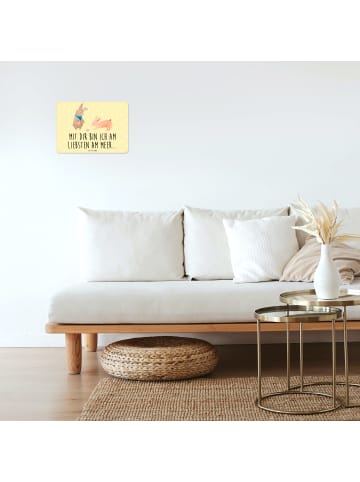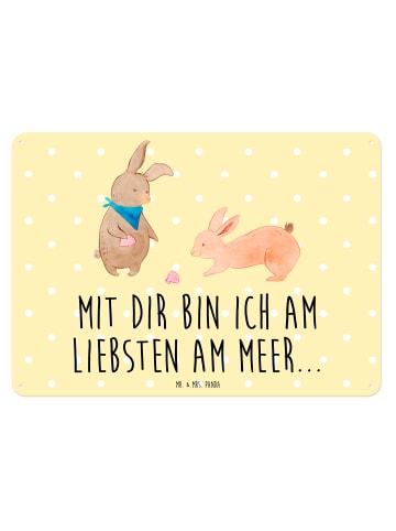 Mr. & Mrs. Panda Blechschild Hasen Muschel mit Spruch in Gelb Pastell