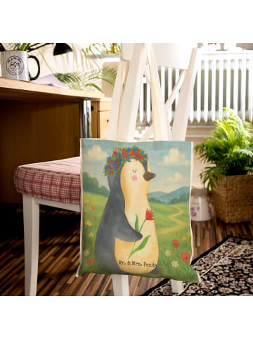 Mr. & Mrs. Panda Einkaufstasche Pinguin Blumen Design ohne Spruch in Weiß