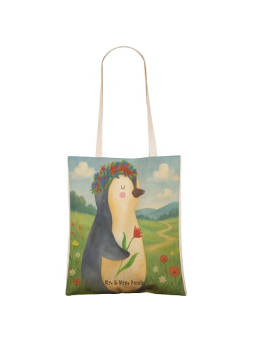 Mr. & Mrs. Panda Einkaufstasche Pinguin Blumen Design ohne Spruch in WeißEinkaufstasche Pinguin Blumen Design ohne Spruch in Weiß